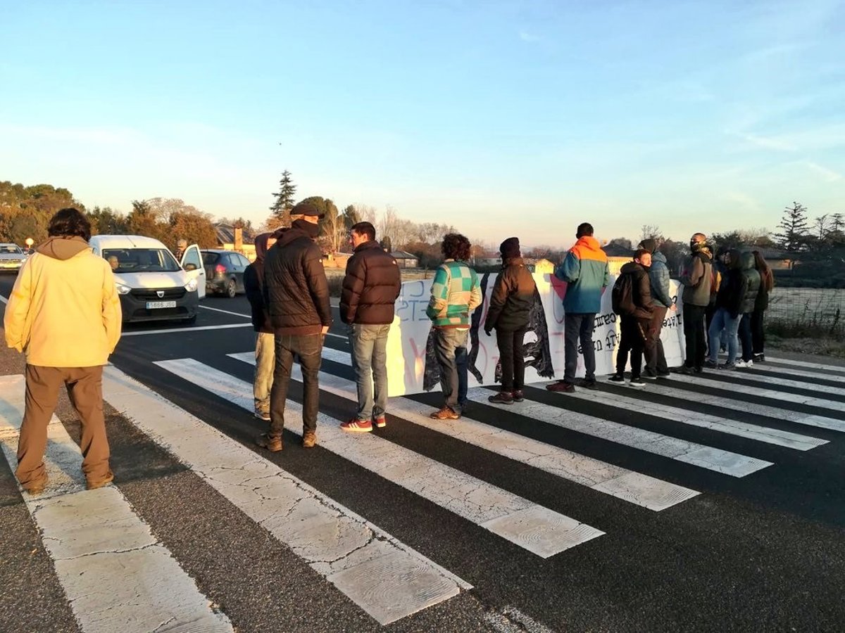Miembros del CDR de la Universitat de Lleida (UdL) han cortado este martes la entrada a Lleida por la avenida Rovira Roure a la altura de la Escuela Técnica Superior de Ingeniera Agraria (Etsia) como acto de protesta por el juicio al proceso soberanista que comienza en Madrid.
