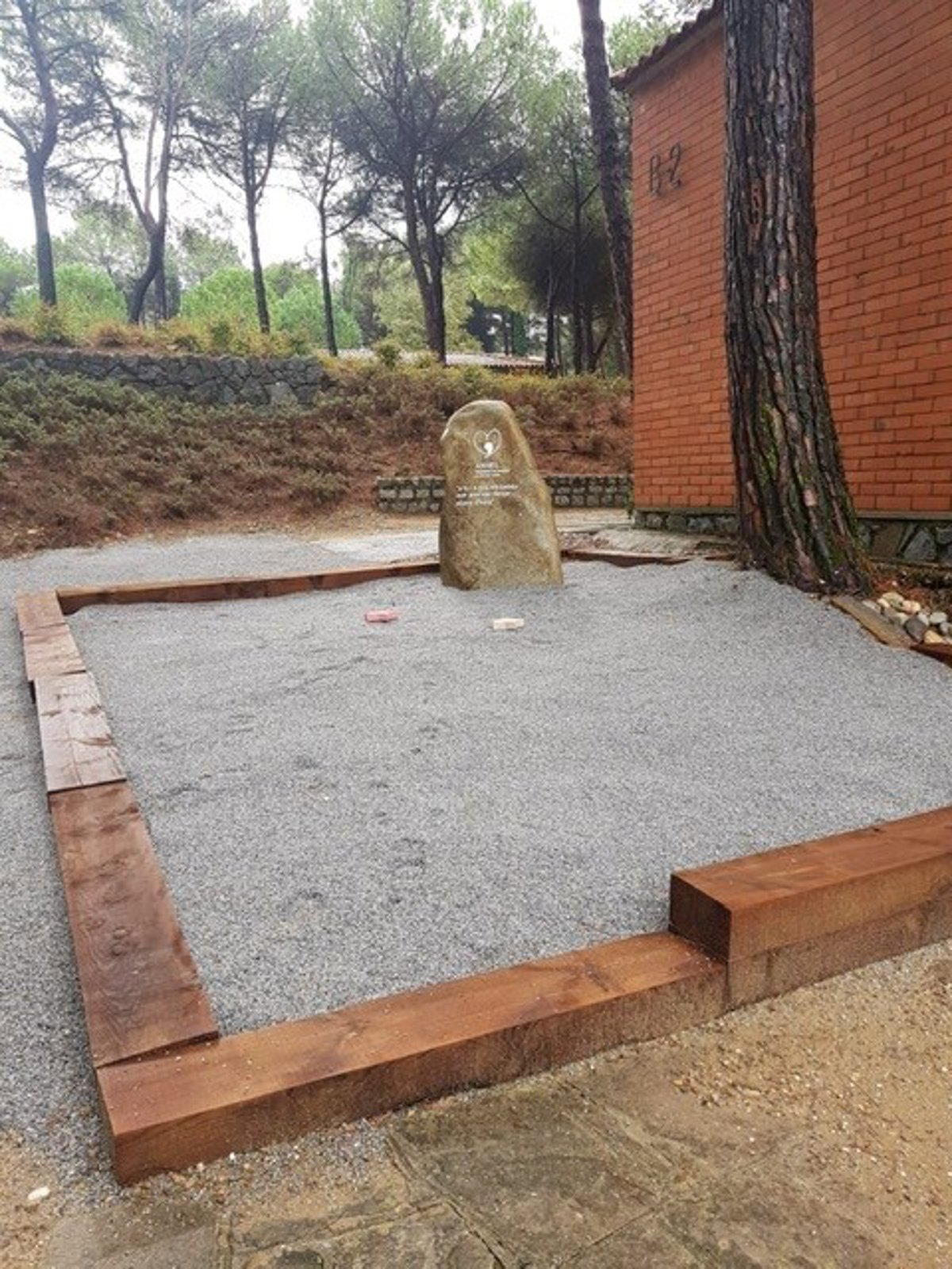 Es un monolito de piedra natural en una parcela delimitada con travesías de madera de pino, y las familias podrán ir colocando pequeñas estrellas en homenaje a sus hijos, sobre la grava de este espacio.