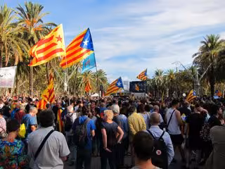 El paseo, custodiado en el Arc de Triomf por un grupo de tractores, se llenaba paulatinamente a medida que se aproxima la hora del discurso, con una mayoría de 'estelades' --tanto enarboladas como anudadas a la cintura--, banderas del 'Sí' y carteles que rezaban 'SOS Democracy!' --que eran repartidos--.