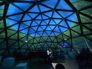 Un centenar de personas asistió este domingo al "concierto inmersivo" de la artista Lidia Papió en la Cúpula de la Sostenibilitat instalada en el Refugi 1 del Muelle de Costa del Port de Tarragona.