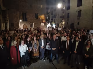 La asociación Aixeca't - Levántate ha convocado el acto a las 19.00 horas, con la colaboración de Societat Civil Catalana (SCC), Asociación por la Tolerancia y Asociación Catalunya por España, y han asistido representantes de PP, Cs, BCN Canvi y Vox.