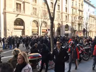 Un grupo de antidisturbios de los Mossos d'Esquadra se han situado frente a la puerta de la Fiscalía y las personas concentradas han desplegado dos pancartas: en una con el lema 'Contra la represión, república' y en la otra 'Contra la represión, desobedezcamos'.