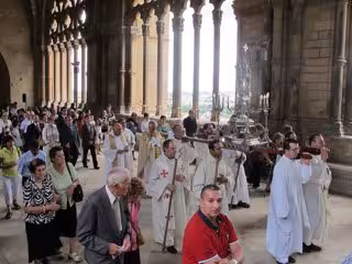 Centenares de fieles han celebrado este domingo la procesión del Corpus en Lleida, presidida por la Santa Custodia, que ha sido bendecida por el obispo, Joan Piris.