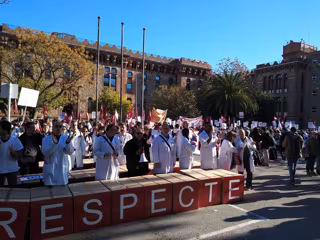 No descartan ampliar la huelga si el viernes no han llegado a un acuerdo BARCELONA, 27 Nov. (EUROPA PRESS) Cerca de 1.500 médicos y trabajadores de la atención primaria del ICS y de la sanidad concertada, según los organizadores, han llevado las reivindicaciones de la huelga de esta semana en una concentración ante la Conselleria de Salud de la Generalitat, al grito de "más calidad, menos precariedad". En la segunda jornada de paros, han hecho sonar pitos, vuvuzelas, petardos y megáfonos ante la sede del departamento, y en la protesta se ha gritado '¡Pelay dimisión!', dirigiéndose a la secretaria de Salud, Laura Pelay, que sustituye a la consellera Alba Vergés durante su permiso por maternidad. La protesta, que se ha iniciado a las 11 horas, ha tratado de entrar en la sede del departamento sin éxito, y tras la negativa de éste de que un cargo recibiera a una representación de los concentrados, han transformado la concentración en manifestación y han cortado la Travessera de Les Corts. Los manifestantes han avanzado hasta la Gran Via de Carles III, por donde han subido hasta cortar la Diagonal en el cruce con esta vía, y se han sentado en el suelo al bajo el lema de 'A tí también te afecta', 'Vaga, vaga, la Primaria ya no traga' y 'Volem més temps pels nostres pacients'. Hacia las 14.00 horas han disuelto la manifestación, dirigiendo un aplauso a los coches que estaban parados, y dándoles las gracias, a la vez que han sido aplaudidos por transeúntes que se han parado a animar a la protesta. En declaraciones a los medios, el secretario de atención primaria del ICS de Metges de Catalunya, Óscar Pablos, ha reclamado que la administración les escuche: "Fijemos de una vez cuál es la cantidad máxima de trabajo que un facultativo puede aportar en una jornada", que se les dote de un tiempo mínimo para atender al paciente y de un límite de población a cargo. "Estamos pidiendo poder hacer el trabajo con calidad y no poner en riesgo a nuestros pacientes", ante lo que ha apelado al ICS y a la Conselleria a que les dé apoyo y logren entenderse, afirmado que se plantean ampliar la huelga más allá del viernes si no se llega a un acuerdo con las negociaciones. Al ser apelados sobre afirmaciones del portavoz de JxCat Eduard Pujol, que afirmó que los médicos se preocupan por cuestiones que no son esenciales, ha respondido que se preocupan por dotar de calidad el acto médico. Ha asegurado que lo que piden a Pelay es que se acerquen las posiciones, ha afirmado, y a la pregunta de si mantendrán la huelga si el viernes no han logrado un acuerdo, ha respondido: "Absolutamente sí" porque no pueden quedarse de brazos cluzados, y ha asegurado que si se reúnen este martes será con voluntad de diálogo pero sin renunciar a poner este límite. El presidente del sector de hospitales concertados de MC, Xavier Lleonart, ha afirmado que se plantearán de alargar la protesta si no se logran mejoras: "Estamos en una situación tan o más precaria" que el ámbito público, ha dicho, y ha lamentado que desde la concertada no cuentan con interlocutor. Esto se debe a que las patronales La Unió, CAPSS y ACES aprobaron un convenio colectivo "con medidas puramente económicas, sin tener en cuenta la calidad asistencial" con otros sindicatos --sin acuerdo del mayoritario en los médicos-- y creen que ya está todo negociado, ha dicho, a lo que les responden que están en pie de guerra. Este convenio no garantiza "cosas mínimas que son necesarias e imprescindibles", como la calidad asistencial y la reposición de material, y ha alertado de que las listas de espera están 'in cresciendo' y que los profesionales se sienten maltratados, explotados y que no pueden formarse, además de ponerse en riesgo la seguridad del paciente. Ha respondido a Eduard Pujol: "Seguramente él se tendría que preocupar de las retribuciones que cobran los gestores sanitarios" desproporcionadas en muchos casos, superando el sueldo del presidente de la Generalitat y con incrementos durante la crisis.