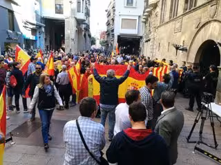 Centenares de personas han participado este sábado en la manifestación convocada por Sociedad Civil Catalana (SCC) en Lleida por la unidad de España y en contra de la declaración de la República catalana del Parlament.