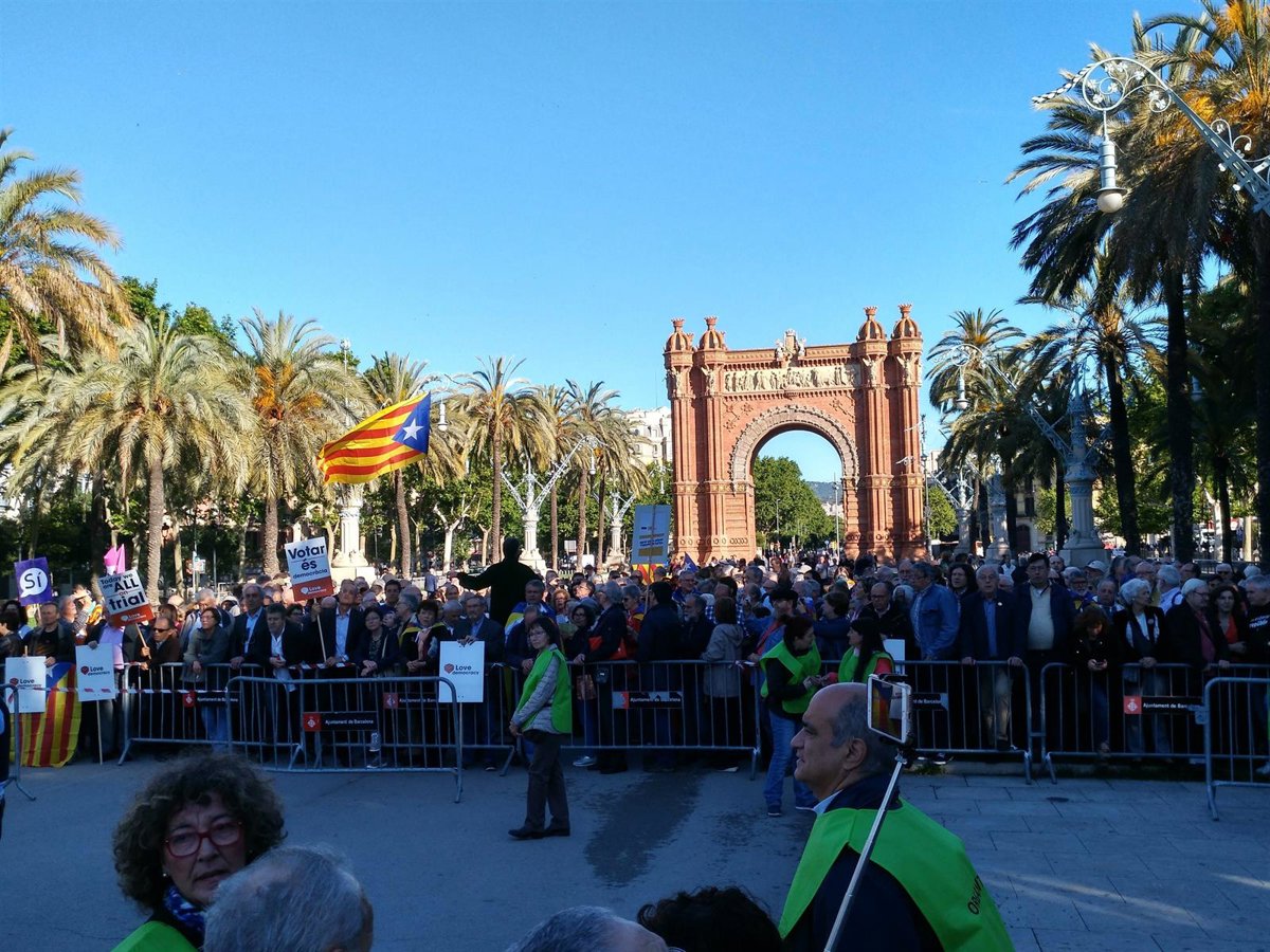 Centenares de personas se han concentrado a primera hora de este viernes para apoyar a los miembros de la Mesa Lluís Corominas y Ramona Barrufet --ambos de JxSí-- antes de que declaren en el Tribunal Superior de Justicia de Catalunya (TSJC) por permitir el debate y votación de resoluciones soberanistas.