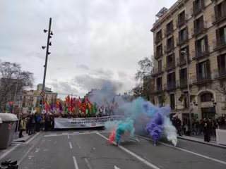 Centenares de personas se manifiestan este jueves en Barcelona en la tercera jornada de la huelga educativa convocada en Catalunya.