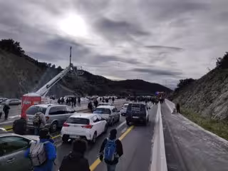 Un centenar de manifestantes del Tsunami Democràtic han retirado sus vehículos de la AP-7 tras pactar con antidisturbios franceses retirarlos de la autopista a cambio de que no se sancione a una docena de coches que inicialmente se habían llevado las grúas, en un punto alejado del escenario que el movimiento independentista ha montado en el corte principal, en el lado francés de la frontera.