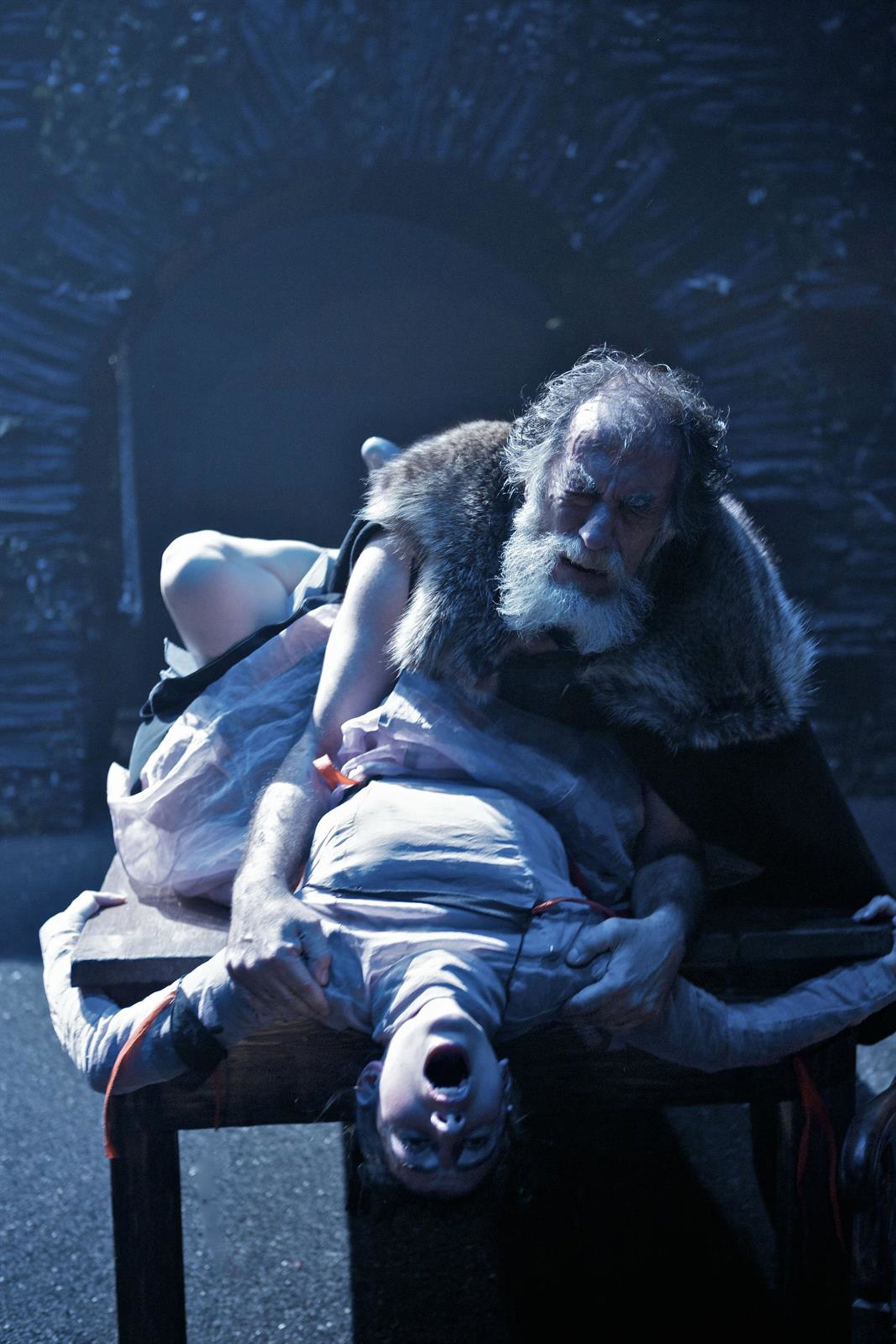 El resultado escénico es un puente de piedra con tres ojos símbolo de la transición de un mundo viejo a uno nuevo, en donde las brujas, las meigas y los rebaños corren a cargo de la "capacidad sugeridora del actor", como cuando los niños consiguen hacer creer a los adultos que juegan con un amigo invisible, ejemplificó.