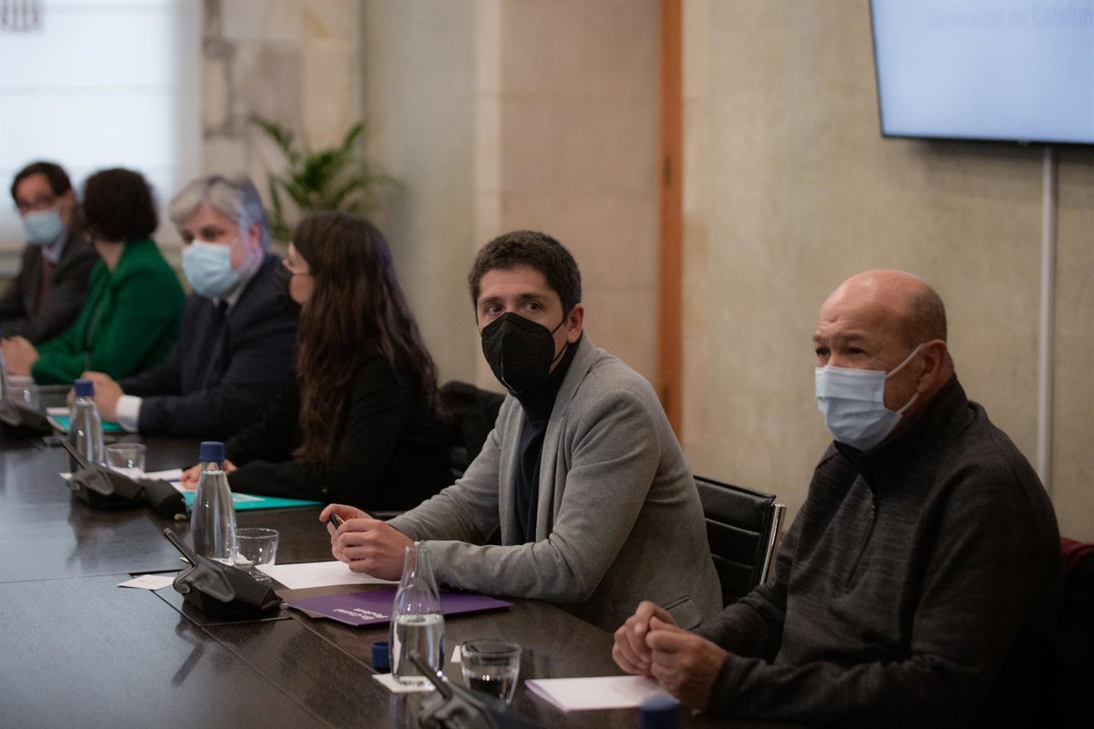 El portavoz de los comuns en el Parlament, David Cid (2d), y el diputado de los comuns en el Parlament Joan Carles Gallego (1d) durante una reunión con los grupos parlamentarios, en el Palau de la Generalitat, a 12 de abril de 2022, en Barcelona, Catalu - David Zorrakino - Europa Press