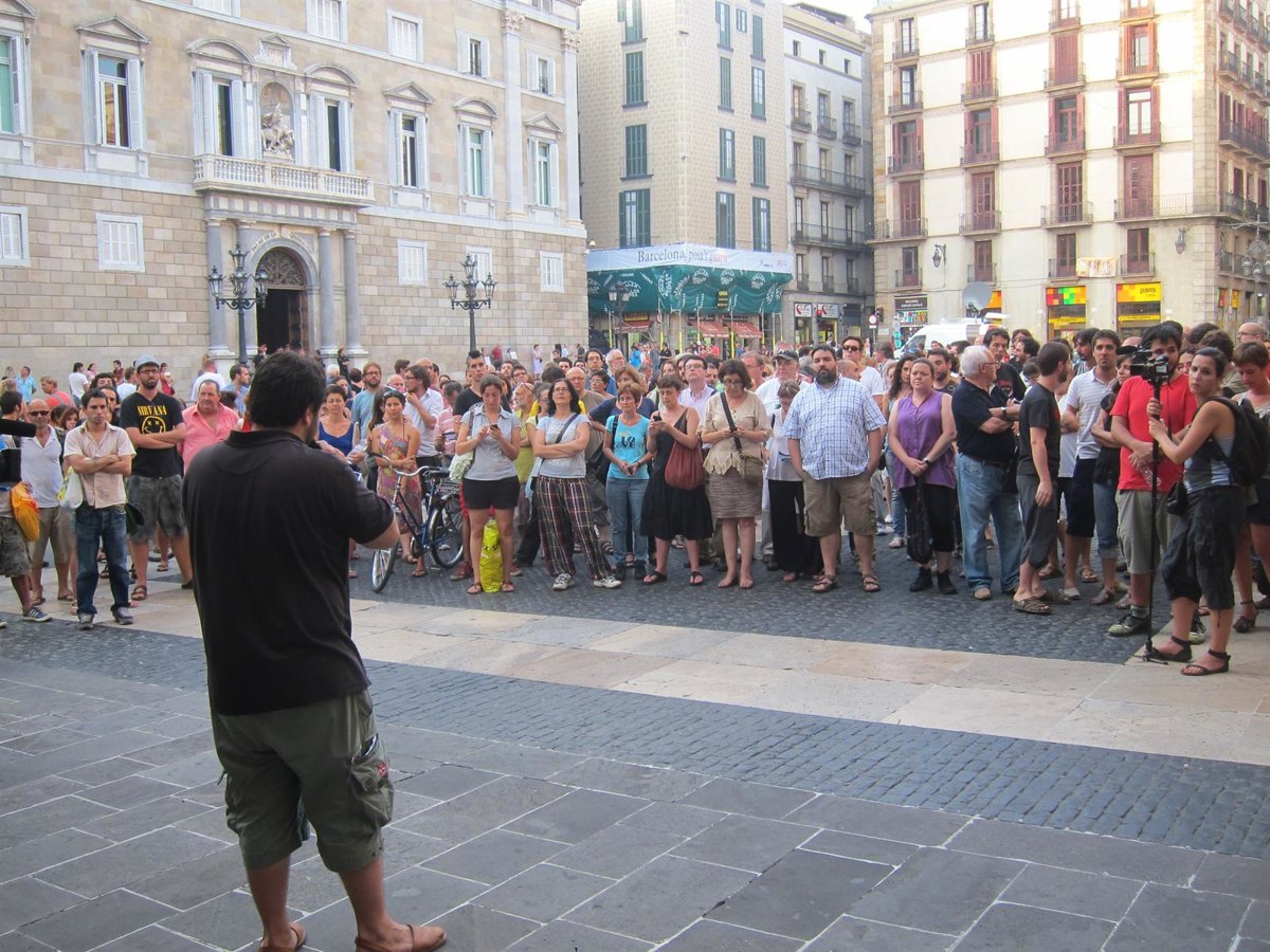 Un centenar de personas convocadas por el colectivo Inflexió se ha concentrado este jueves en la plaza Sant Jaume para mostrar su desacuerdo con la reforma de la Constitución propuesta este martes por el presidente del Gobierno, José Luis Rodríguez Zapatero y que cuenta con el apoyo del PP.