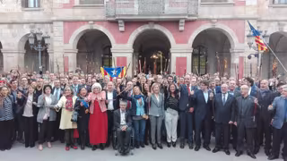 Los alcaldes participan en la marcha luciendo símbolos del poder municipal como la vara de mando, y también han asistido a la concentración los diputados electos de Junts pel sí Jordi Turull, Muriel Casals y Oriol Amat, y el presidente de Òmnium, Quim Torra, entre otros.