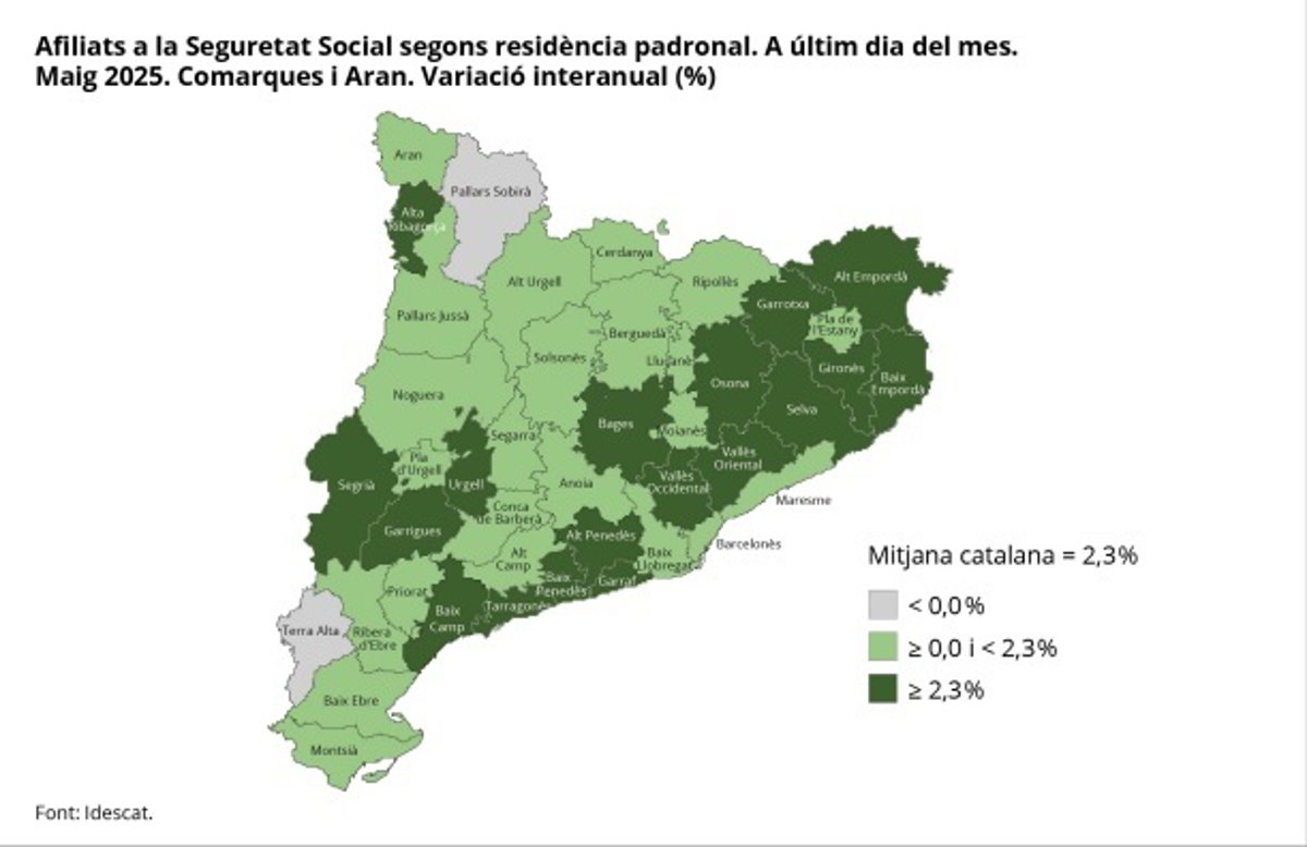 Los afiliados a la Seguridad Social aumentan en Catalunya este mayo, excepto en dos comarcas - IDESCAT