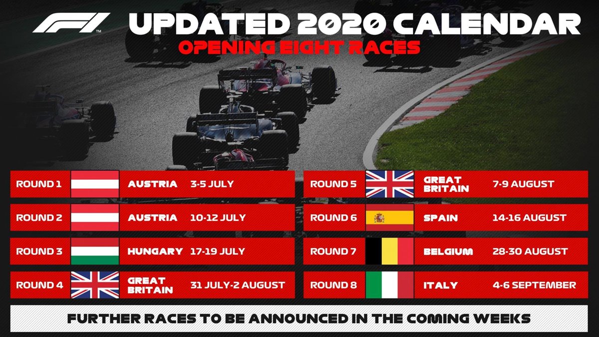 Calendario de las ocho primeras carreras del Mundial 2020 de la Fórmula 1 - F1