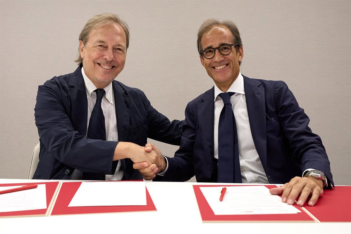 El presidente de la Cámara de Barcelona, Josep Santacreu, y el presidente de Fira de Barcelona, Pau Relat, han firmado este martes la alianza entre ambas organizaciones.