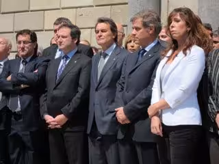 La clase política catalana ha guardado un sentido minuto de silencio ante el Palau de la Generalitat en homenaje a las víctimas del terremoto de Lorca, una vez que los partidos hubieran decidido suspender todos sus actos electorales de las municipales previstos para este día.