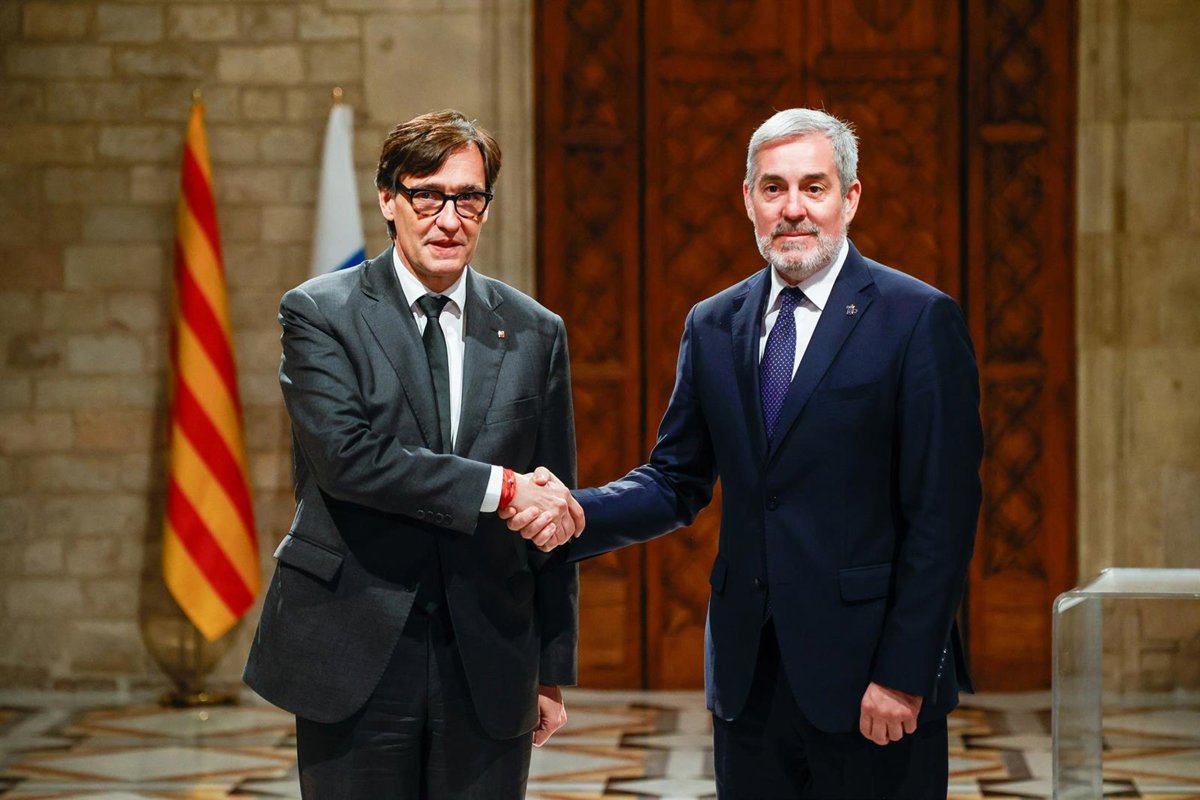 El presidente de Canarias, Fernando Clavijo (d) y el president de la Generalitat, Salvador Illa (i), durante una reunión en el Palau de la Generalitat, a 19 de noviembre de 2025, en Barcelona, Catalunya (España). Fernando Clavijo se ha entrevistado con su - Kike Rincón - Europa Press