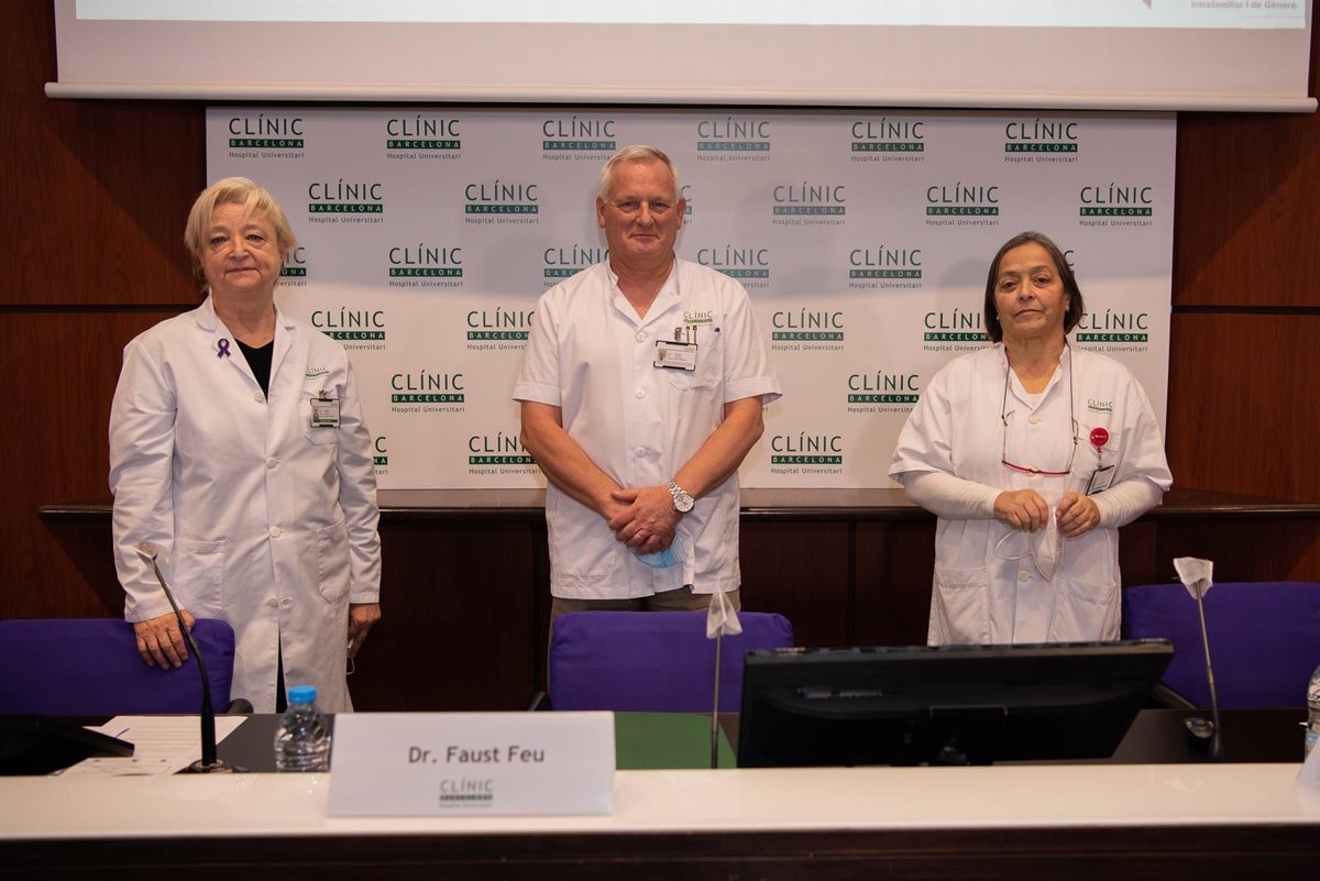 La presidenta de la Comisión de Violencia Intrafamiliar y de Género del Hospital Clínic, Lluisa García Esteve, el director de Calidad y Seguridad Clínica, Faust Feu, y la coordinadora de Urgencias, Teresa Echeverría - HOSPITAL CLINIC BARCELONA / FRANCISCO AVIA