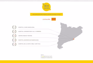 Respecto al IEH General, Catalunya tiene 4 centros entre los 10 primeros: Hospital Clínic (4), Hospital Vall d'Hebron (5), Centro Médico Teknon (9) y Hospital Quirónsalud Barcelona (10).