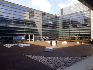 El edificio, que se ubica muy cerca de la autopista B-23, se ha reformado en el último año, y cuenta con auditorio, salas de reuniones, sala de ocio, terrazas comunitarias, gimnasio y cafetería propia.