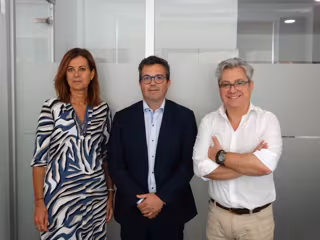 La directora de Internacionalización de Cofides, Ana Cebrián; el ceo de Masdeu, David Masdeu, y el director corporativo del departamento de Inversiones de Cofides Miguel Ángel Ladero. - COFIDES