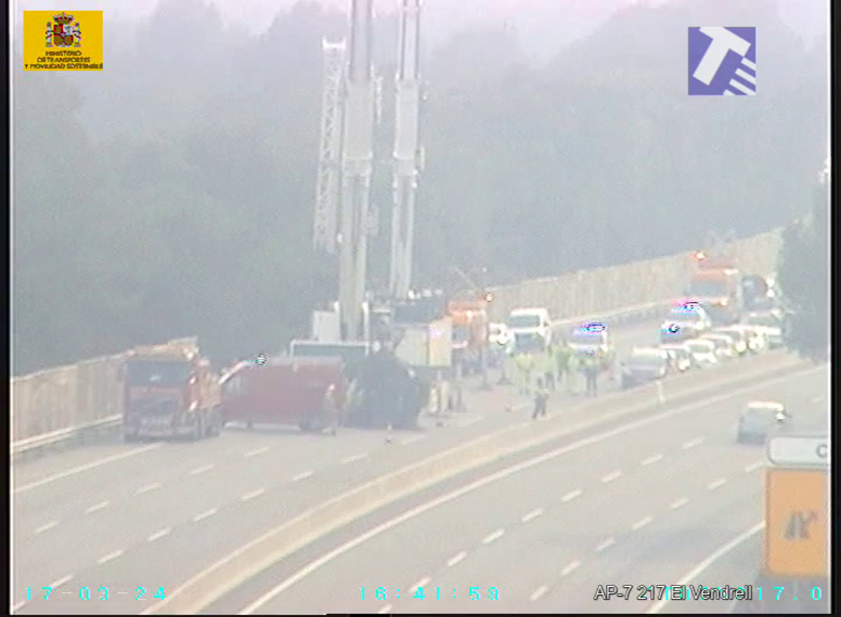 Colas de 6 kilómetros con el corte de la AP-7 en el Vendrell (Tarragona) para retirar un camión accidentado - @SCT