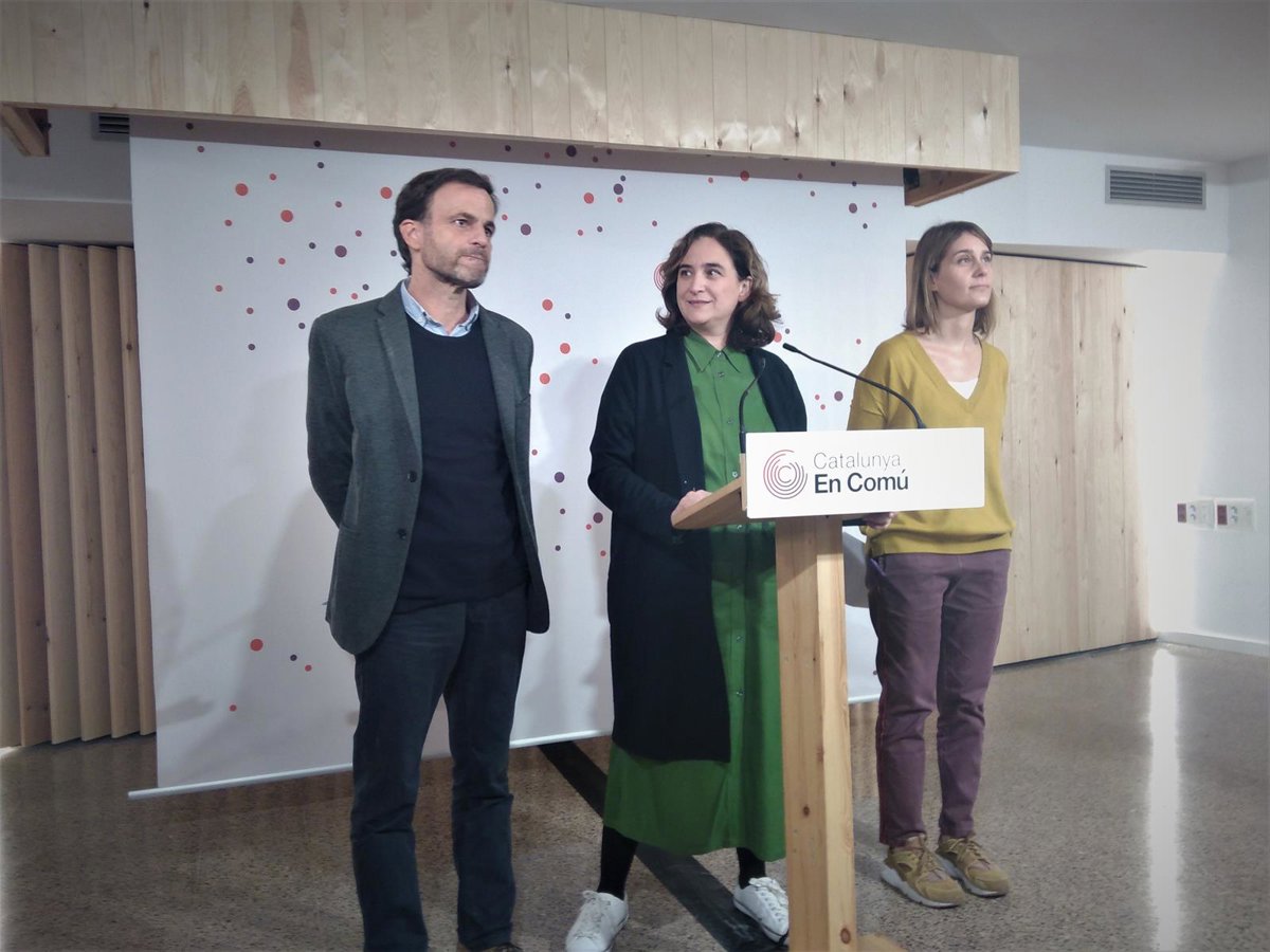 Jaume Asens, Ada Colau y Jéssica Albiach (ECP) en rueda de prensa tras presentarse el programa de gobierno de coalición PSOE-Podemos, en Barcelona, el 30 de diciembre de 2019. - EUROPA PRESS
