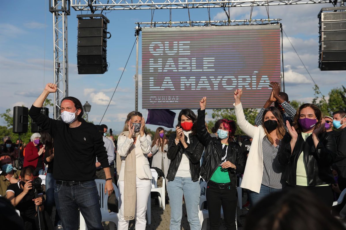 (I-D) El candidato de Unidas Podemos a la presidencia de la Comunidad de Madrid y secretario general de Podemos, Pablo Iglesias; la vicepresidenta tercera y ministra de Trabajo, Yolanda Díaz; la 'número 2' del partido para las elecciones a la Asamblea d - Isabel Infantes - Europa Press