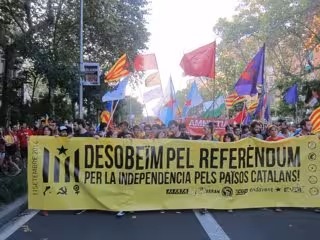 Colectivos de la izquierda independentista se han manifestado este jueves por las calles de Barcelona bajo el lema 'Desobedecemos por el referéndum para la independencia de los Països Catalans' y para proclamar que el 9 de noviembre hay que votar "sí o sí" al margen de un posible veto del Tribunal Constitucional (TC).