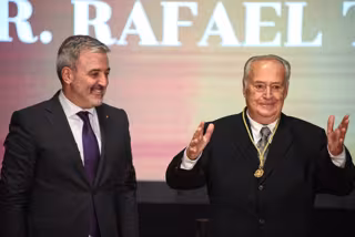 El alcalde de Barcelona, Jaume Collboni, ha entregado este lunes la Medalla de Oro al Mérito Cultural al mecenas y coleccionista Rafael Tous en un acto en el Saló de Cent del Ayuntamiento de Barcelona.