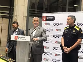 El alcalde de Barcelona, Jaume Collboni, en una rueda de prensa en la comisaría del distrito de Ciutat Vella de Barcelona - EUROPA PRESS