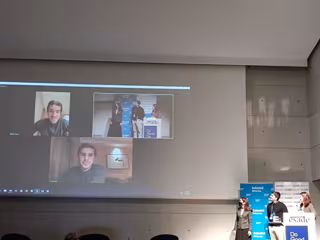 En la pantalla, los fundadores de Colvin, Andrés Cester y Sergi Bastardas, en la entrega del premio de Esade Alumni y Banco Sabadell a mejor startup 2021. - EUROPA PRESS