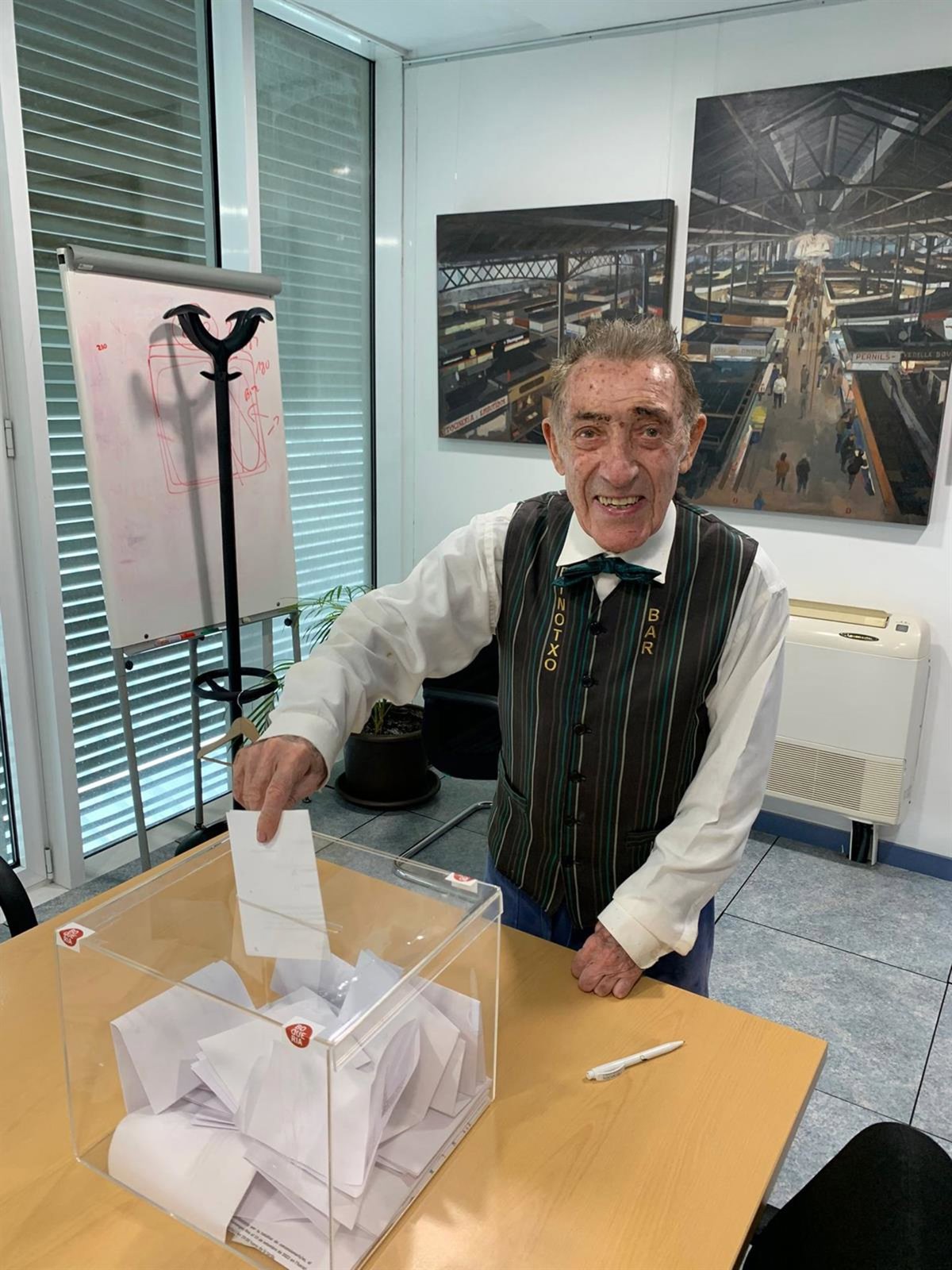 El responsable del histórico Bar Pinotxo de la Boqueria, Joan Bayen, votando en la consulta - MERCAT DE LA BOQUERIA