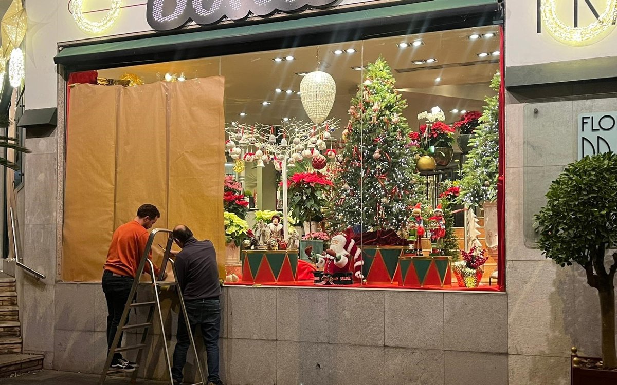 Comerciantes de la plaza Bonanova protegen sus establecimientos en vísperas del desalojo de la Runa y el Kubo en Barcelona - EUROPA PRESS