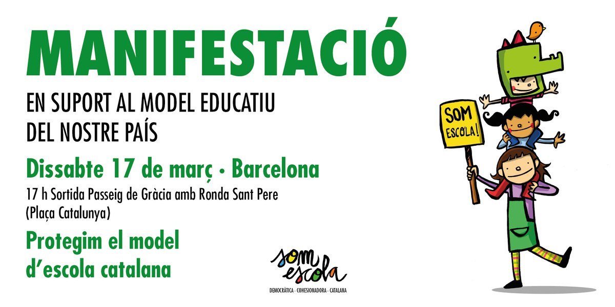 El 28 de febrero, la plataforma Somescola convocó concentraciones ante los ayuntamientos catalanes y un acto en una escuela de Santa Coloma de Gramenet (Barcelona) con las alcaldesas Ada Colau (Barcelona), Núria Parlon (Santa Coloma), Dolors Sabater (Badalona) y Mercè Conesa (Sant Cugat) y las entidades municipalistas en apoyo al modelo de escuela catalana.