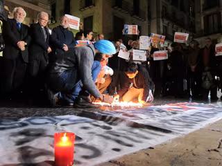 Representantes de 86 entidades y asociaciones de la comunidad musulmana en Catalunya se han concentrado este lunes en la plaza Sant Jaume de Barcelona para repudiar los atentados de París y rechazar que se hagan en nombre del Islam y los musulmanes actos violentos que solo responden a "criminales y terroristas", que no pueden ser respaldados por ninguna religión, han sentenciado.
