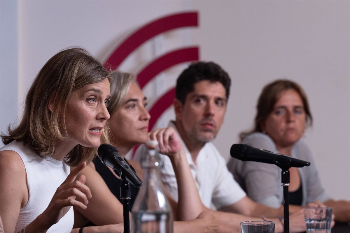 Archivo - (I-2D) La líder de los comuns en el Parlament, Jéssica Albiach, la exalcaldesa de Barcelona, Ada Colau, y el portavoz de los comuns en el Parlament, David Cid, durante una votación de un preacuerdo de investidura con el PSC, a 31 de julio de 202 - David Zorrakino - Europa Press - Archivo