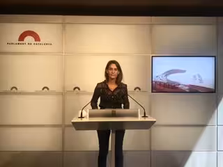La líder de los comuns en el Parlament, Jéssica Albiach, este lunes en rueda de prensa - EUROPA PRESS