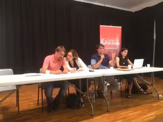 La ejecutiva de los 'comuns' llevó a los nueve debates que se han hecho en las ocho vegueríes catalanas --dos en la de Barcelona-- un documento en el que se planteaba apoyar "las movilizaciones que hagan avanzar en el derecho a decidir".