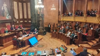Tras la intervención de Maragall al final de la sesión plenaria, en la que se ha despedido de la tarea "más noble y exigente" en el Ayuntamiento, los presidentes de cada grupo han dedicado unas palabras al republicano después de una gran ovación.