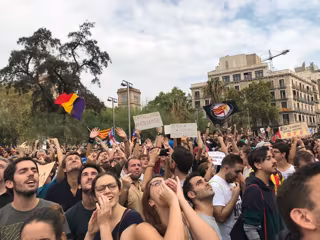 También se han desplazado hasta este punto los manifestantes que han protagonizado actos de rechazo antes los colegios que eran puntos de votación el 1-O y en los que hubo cargas policiales.