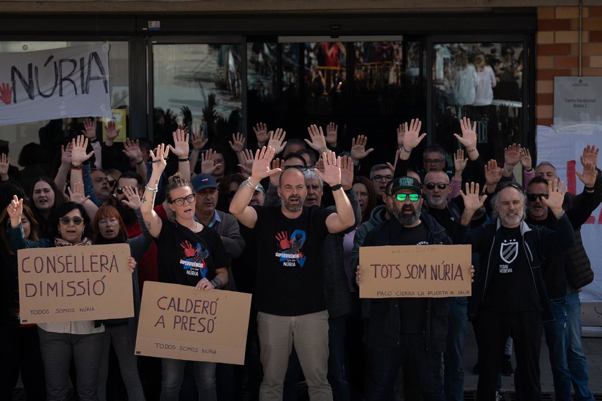 Funcionarios protestan con carteles durante una concentración frente al Centro Penitenciario Brians 2, a 22 de marzo de 2024, en Sant Esteve de Sesrovires, Barcelona, Catalunya (España) - David Zorrakino - Europa Press