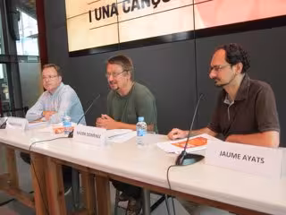 En rueda de prensa este miércoles, han presentado el espectáculo su director musical Francesc Cassú; el comisionado de Estudios Estratégicos del Ayuntamiento de Barcelona Xavier Domènech, y el musicólogo Jaume Ayats, autor del libro que ha inspirado el concierto y la exposición que lo acompaña 'Bon cop de falç. La història de l'himne'.