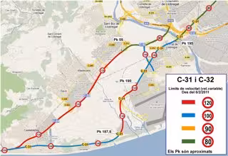 Además, la madrugada del lunes al martes se sustituirán las señales de 80 en la autopista del Maresme, la C-31 norte, donde se podrá llegar en algunos tramos a los 120 kilómetros.