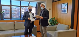 El presidente del CEC, Jesús Viñas, entregando al conseller de Educación, Josep Gonzlez-Cambray, las propuestas sobre el uso del catalán en la educación - EDUCACIÓ