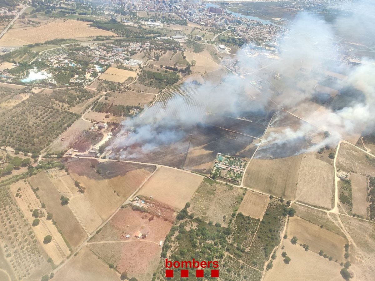 Incendio de campos y un almacén en Roses (Girona) el 11 de julio de 2022. - @BOMBERSCAT