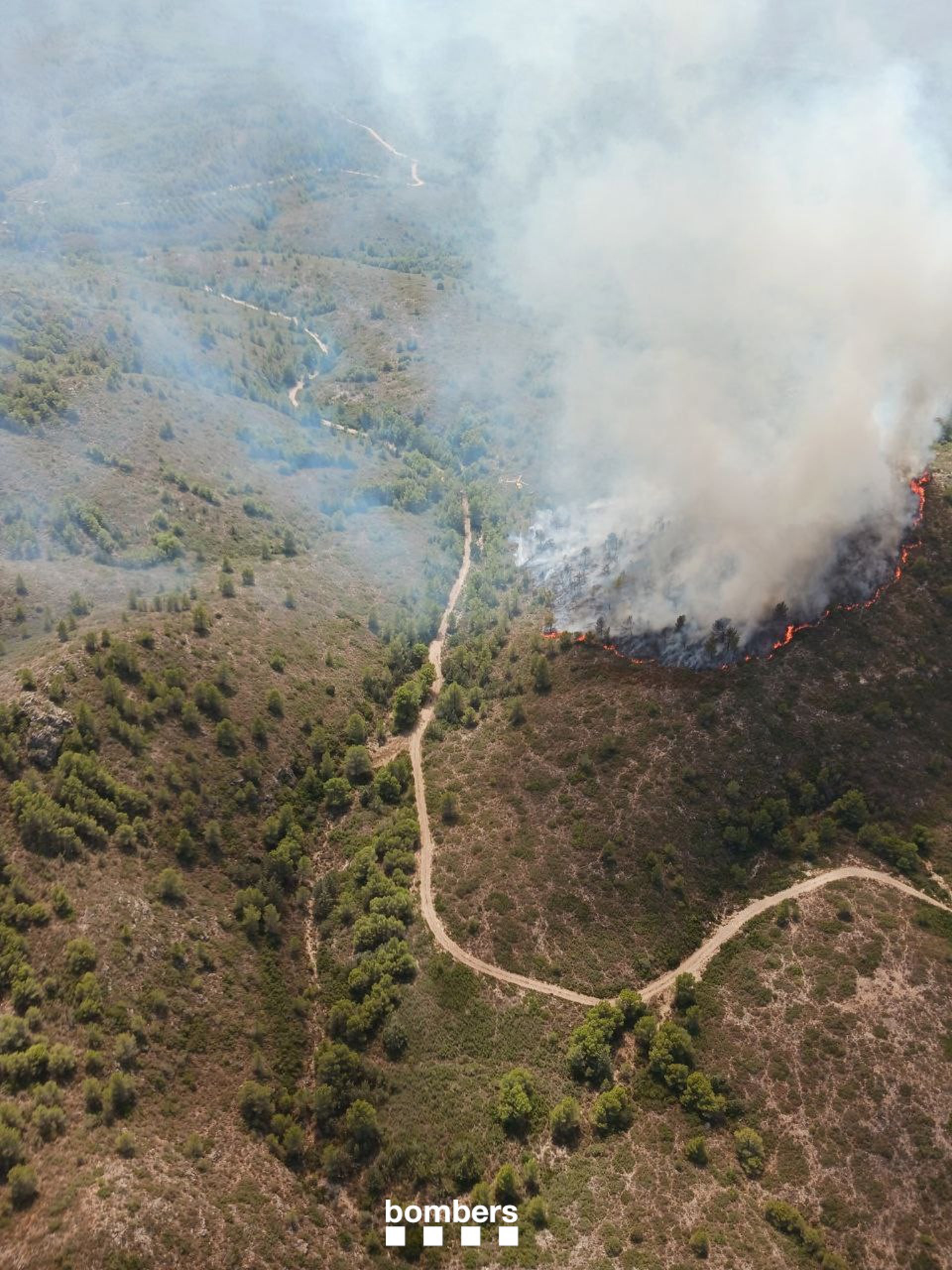 Agents Rurals han cifrado que este fuego ha afectado a cerca de una hectárea y han recordado que 27 comarcas de Catalunya tienen activado el nivel 2 del Plan Alfa por el riesgo elevado de incendio.