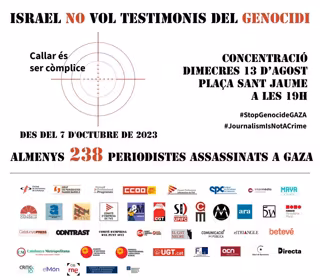Periodistas catalanes han convocado una concentración este miércoles a las 19 horas en la plaza Sant Jaume de Barcelona contra el "asesinato sistemático" de compañeros en Gaza por parte del ejército israelí.