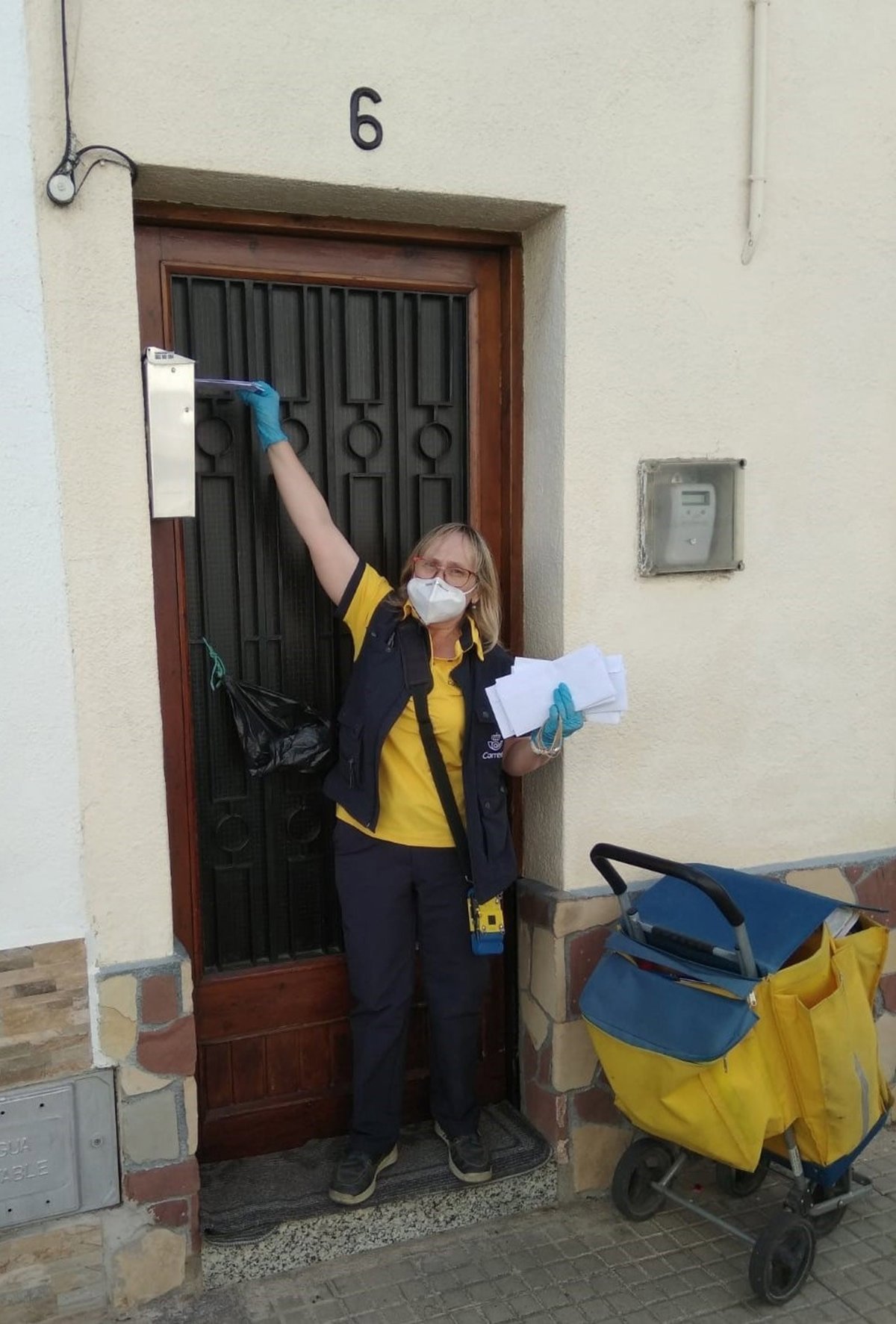 Una cartera de correos reparte mascarillas adquiridas por el Ayuntamiento de Parets del Valls (Barcelona) para mayores de 60 años - CORREOS