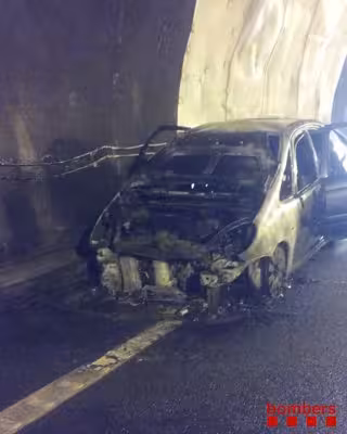 Coche calzinado en el túnel de la C-25 en Sant Hilari de Sacalm (Girona) - BOMBERS DE LA GENERALITAT